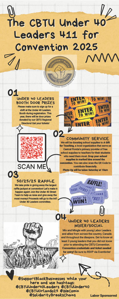 To ensure we are all united and moving with one powerful heartbeat, dive into the updates below and review the Under 40 Leaders report from our committee meeting. Stay informed and aligned by clicking the 2025 convention image to explore the CBTU convention website and full agenda.