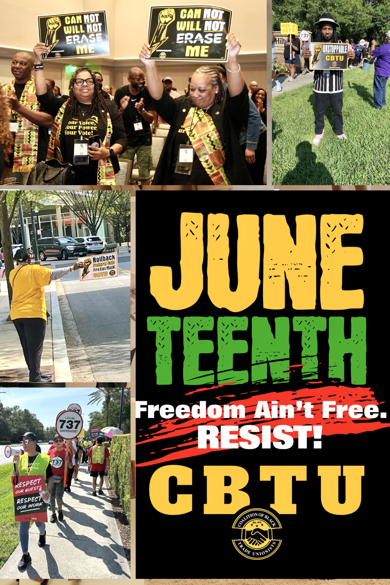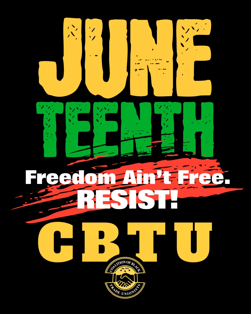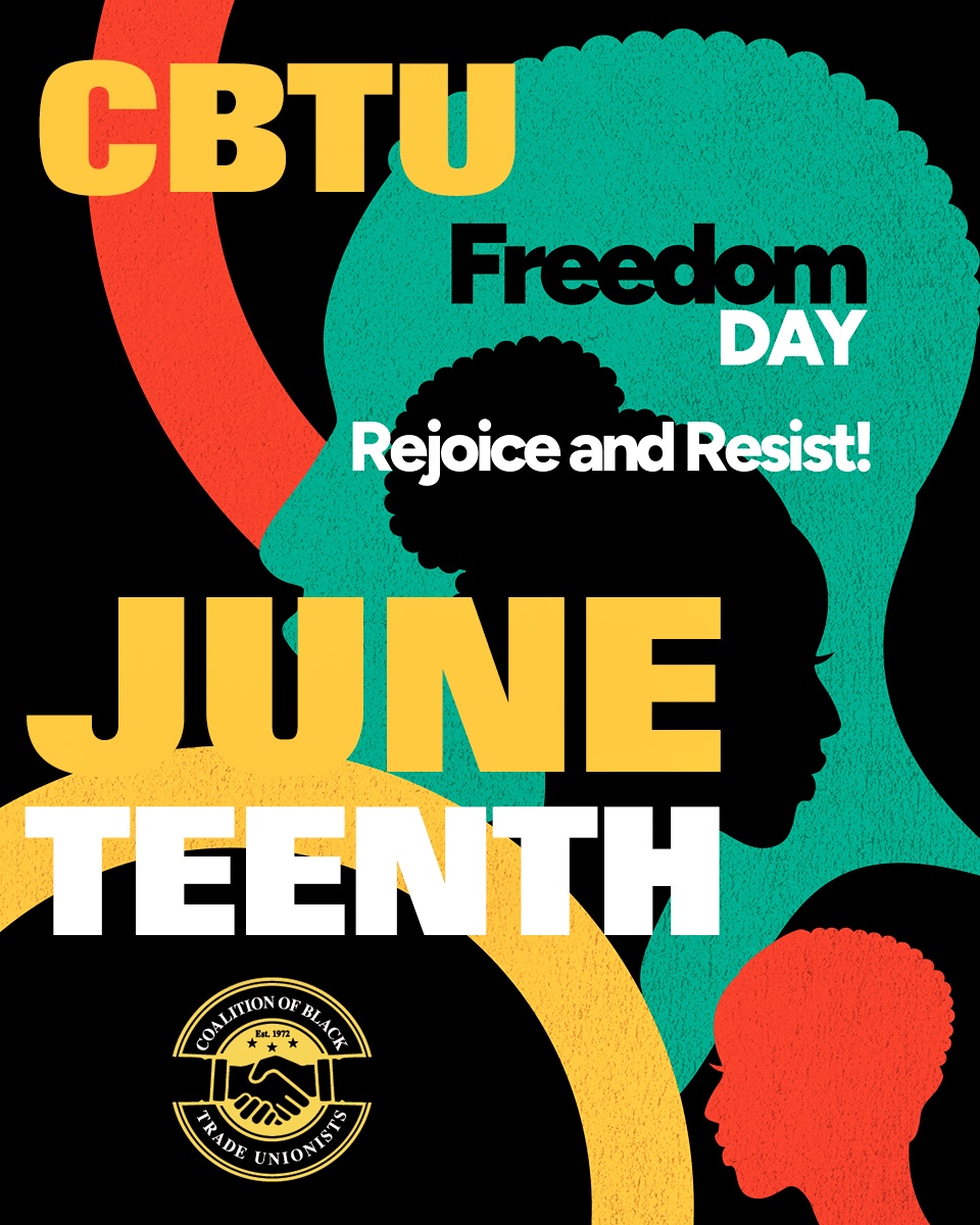 CBTU is committed to not only remembering the last 250,000 enslaved Black people who were freed in Texas on June 19, 1865, we are, more importantly, committed to doing the work of protecting our people and our freedoms. That was the mission of our founders, and it guides our work today -- no matter what evil or hate or greed stand in our way. So, please proudly display and share the attached CBTU Juneteenth graphics. Show that you will still fight for our freedom and rejoice in the unbreakable spirit of Black joy.